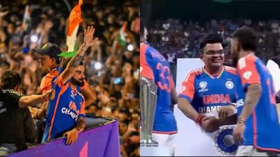 टी20 वर्ल्डकप विजयाचा जल्लोष मुंबईत मोठ्या थाटात पार पडला. वर्किग डे असूनही चाहत्यांनी तुफान गर्दी केली होती. अंतिम सामना जिंकून पाच दिवस उलटले तरी जोश काही कमी झाला नव्हता. याची अनुभूती विजयी मिरवणुकीत दिसून आली. टी20 वर्ल्डकप विजयानंतर रोहित शर्मा, विराट कोहली आणि रवींद्र जडेजा यांनी निवृत्ती जाहीर केली आहे. या फॉर्मेटच्या शेवटच्या टप्प्यात मिळालेलं यश खरंच खूप महत्त्वाचं ठरलं. विराट कोहली संपूर्ण वर्ल्डकप स्पर्धेत फेल गेला. मात्र अंतिम फेरीत केलेली कामगिरी सर्वांच्या लक्षात राहणारी आहे. त्याच्या अर्धशतकी खेळीमुळे टीम इंडियाला 177 धावांपर्यंत मजल मारता आली. त्यामुळे विराट कोहलीचे चाहते खूपच खूश आहेत. असं असताना एक व्हिडीओ सोशल मीडियावर वेगाने व्हायरल होत आहे. व्हायरल व्हिडीओत बीसीसीआय सचिव जय शाह यांनाही विराट कोहलीच्या वर्ल्डकपमधील कामगिरीची भूरळ पडल्याचं दिसत आहे.