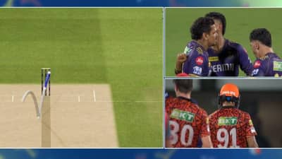 आयपीएल 2024 स्पर्धेच्या अंतिम फेरीत सनरायझर्स हैदराबादच्या वाघांनी गवत खाल्लं, असंच म्हणावं लागलं. एकही फलंदाज मोठी धावसंख्या उभारू शकला नाही. सनरायझर्स हैदराबादकडून कर्णधार पॅट कमिन्सने सर्वाधिक 24 धावा केल्या. या व्यतिरिक्त एकही फलंदाज साजेशी कामगिरी करू शकला नाही. सनरायझर्स हैदराबादने 18.3 षटकात सर्व गडी गमवत 113 धावा केल्या आणि विजयासाठी 114 धावांचं आव्हान दिलं. या सामन्यातील हैदराबादच्या डावात एक चमत्कारीक घटना घडली. कोलकाता नाईट रायडर्सचा कर्णधार श्रेयस अय्यरने संघाचं 18वं आणि वैयक्तिक चौथं षटक सुनील नरीनकडे सोपवलं. एकही विकेट न मिळाल्याने सुनील नरीन प्रयत्न करत होता. पहिले चार चेंडू एक दोन धावा आल्या. पाचव्या चेंडूवर एकदम विचित्र घटना घडली. जयदेव उनाडकट स्ट्राईकला होता आणि सुनील नरीनने त्याला पाचवा चेंडू टाकला. नरीनने टाकलेला चेंडूवर फटका मारण्यासाठी उनाडकटने एक पाय पुढे टाकला आणि फसला. चेंडू थेट पायाला आदळला आणि बेल्सला घासून गेला. बेल्स काही पडली नाही पण स्टंप लाईट पेटला. यामुळे उनाडकटचं नशिब जोरात असल्याची चर्चा रंगली. पंचांनीही काहीच निर्णय दिला नाही. पण श्रेयस अय्यरने डीआरएस रिव्ह्यू घेतला आणि पाहीजे तेच झालं.