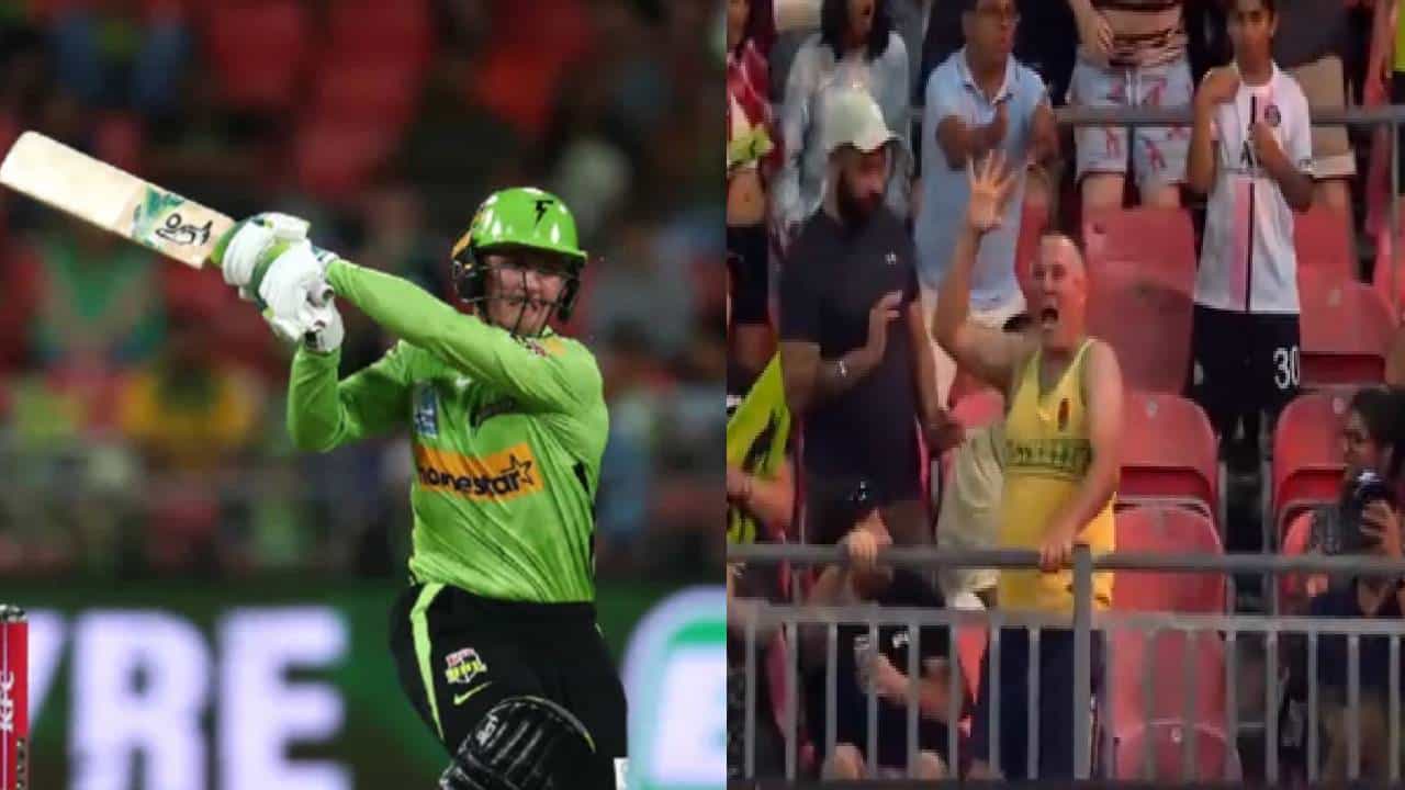 सिडनी: क्रिकेटच्या मैदानात काहीवेळा खेळाडूंबरोबर दुर्घटना घडतात. चेंडू लागून किंवा पळताना अडखळून खेळाडू जखमी होतात. काहीवेळा स्टेडियममध्ये बसलेले प्रेक्षकही सामन्यादरम्यान जखमी होतात. बिग बॅश लीग 2022-23 च्या 17 व्या सामन्यात असच दृश्य पहायला मिळालं. सिडनीच्या शोग्राऊंड स्टेडियममध्ये हा सामना झाला. सिडनी थंडरचा ओपनर मॅथ्यू गिलक्सच्या एका शॉटमुळे स्टेडियममध्ये बसलेला एक प्रेक्षक थोडक्यात वाचला. गिलक्सने लांबलचक सिक्स मारला. चेंडू थेट चाहत्याच्या चेहऱ्यावर लागला.