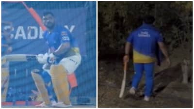 (MS Dhoni hitting sixes and searchin ball in trees at practice session video posted by CSK)