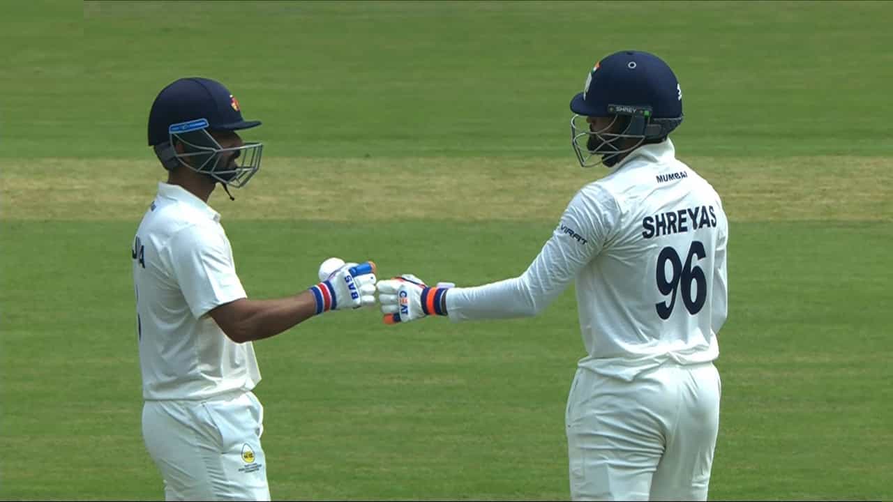मुंबई प्लेइंग ईलेव्हन : अजिंक्य रहाणे (कर्णधार), पृथ्वी शॉ, आयुष म्हात्रे, सिद्धेश लाड, श्रेयस अय्यर, हार्दिक तामोरे (विकेटकीपर), शम्स मुलानी, तनुष कोटियन, शार्दूल ठाकुर, मोहित अवस्थी आणि हिमांशू वीर सिंग.