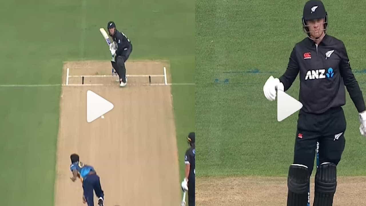 NZ vs SL : न्यूझीलंड विरुद्ध टेस्ट सीरीज गमावल्यानंतर श्रीलंकन टीम आता वनडे फॉर्मेटमध्ये आव्हान देतेय. तीन वनडे सामन्यांच्या सीरीजमधील पहिला सामना ऑकलंडमध्ये खेळला गेला. या मॅचमध्ये सुरुवातीला जे घडलं, त्याची सोशल मीडियावर चर्चा आहे. मॅचच्या सुरुवातीलाच फिन एलेन OUT असूनही बाद झाला नाही. सोशल मीडियावर मैदानात घडलेल्या त्या प्रसंगाचा व्हिडिओ वेगाने व्हायरल होतोय. मैदानावरील हे दृश्य पाहणाऱ्या प्रत्येकालाच आश्चर्याचा धक्का बसला.