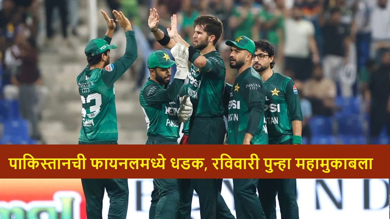 दरम्यान आता अंतिम सामन्यात टीम इंडिया विरुद्ध पाकिस्तान हे दोन संघ पुन्हा एकदा भिडणार आहे. दोन्ही संघ साखळी आणि सुपर 4 फेरीत आमनेसामने आले होते. भारताने दोन्ही वेळा पाकिस्तानला पराभूत केलं. त्यामुळे पाकिस्तानचा अंतिम फेरीत विजय मिळवत या 2 पराभवांची परतफेड करण्याचा प्रयत्न असणार आहे. तर त्याटीम इंडिया पाकिस्तानला पराभूत करत सलग दुसर्यांदा आशिया चॅम्पियन होण्यासाठी मैदानात उतरणार आहे. या सामन्याकडे साऱ्या क्रिकेट विश्वाचं लक्ष असणार आहे.