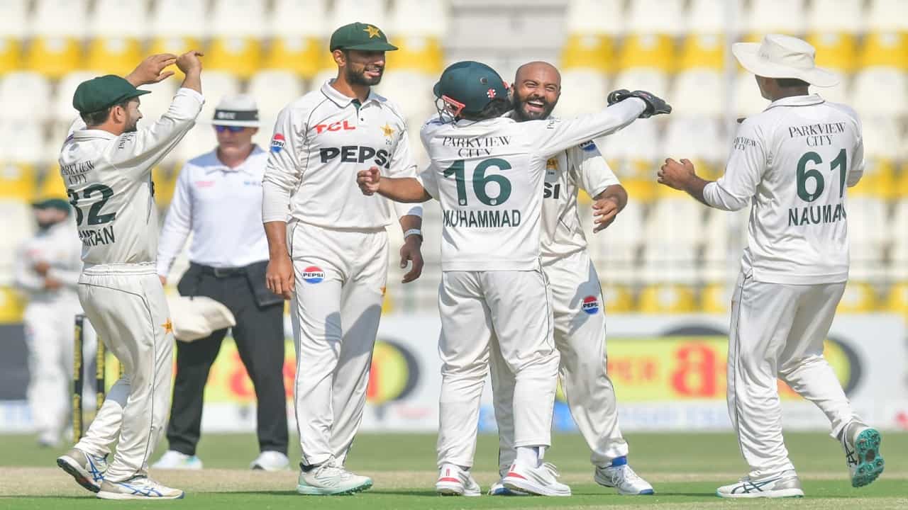 पाकिस्तान प्लेइंग ईलेव्हन : शान मसूद (कर्णधार), सैम अयुब, अब्दुल्ला शफीक, कामरान गुलाम, सौद शकील, मोहम्मद रिझवान (विकेटकीपर), आगा सलमान, आमेर जमाल, नोमान अली, साजिद खान आणि जाहिद महमूद.