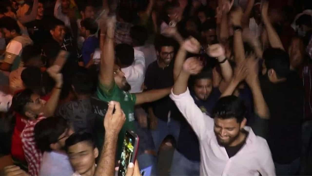 टी-20 विश्वचषक स्पर्धेमध्ये (T20 World Cup 2021) भारत आणि पाकिस्तान यांच्यात रविवारी एकतर्फी लढाई पाहायला मिळाली. हा सामना पाकिस्तानने अगदी सहज खिशात घातला. उत्कृष्ट खेळाचं दर्शन घडवत पाकिस्तान संघाने 10 विकेट्सनी दमदार विजय मिळवला. त्यामुळे रविवारी रात्रीच पाकिस्तानात दिवाळी साजरी करण्यात आली. लोक रस्त्यांवर उतरुन जल्लोष करत असल्याचे पाहायला मिळाले. काही ठिकाणी पोलिसांनी फायरींग करुन जल्लोष साजरा केला.