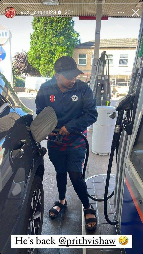 युझवेंद्र चहलचा मस्करी करणारा स्वभाव प्रत्येकाला माहिती आहे. त्यामुळे त्याचं कोणी मनाला लावून घेत नाही. पृथ्वी शॉचा पेट्रोल पंपवर पेट्रोल भरतानाचा एका व्हिडीओ शेअर केला आहे. चहलने हा पोस्ट करताना लिहिलं की तो पुन्हा आला आहे. त्यानंतर पृथ्वी शॉने चहलची इंस्टाग्राम स्टोरी आपल्या खात्यावरून शेअर करताना लिहिलं की, लवकरच तुझ्याकडून भरणार. दुसरीकडे, काउंटी क्रिकेटमध्ये पृथ्वी शॉने चांगली कामगिरी केली आहे. पण संघात स्थान मिळवणं खूपच कठीण आहे.