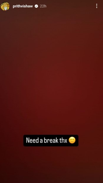 त्यानंतर पृथ्वीने इंस्टा स्टोरी पोस्ट केली आहे. पृथ्वीने या इंस्टा स्टोरीतून आपली खदखद व्यक्त केल्याचं म्हटलं जात आहे. पृथ्वीने “मला विश्रांतीची गरज, धन्यवाद”. पृथ्वीने या इंस्टा स्टोरीत फेक स्माईलचा इशारा करणारी इमोजीचा वापर केला आहे.