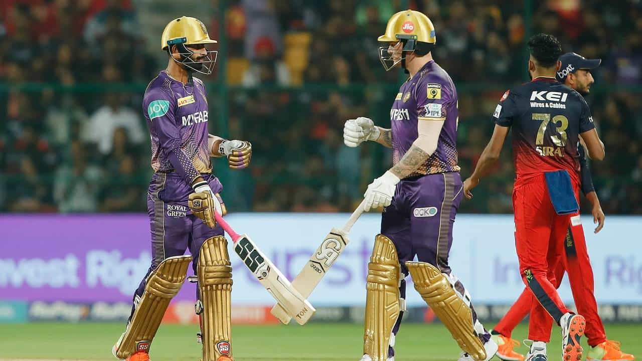 RCB vs KKR IPL 2023 : रॉयल चॅलेंजर्स बंगळुरु विरुद्धच्या सामन्यात जेसन रॉयची बॅट चांगलीच तळपली. आक्रमक खेळीने गोलंदाजांना चांगलाच घाम फोडला.