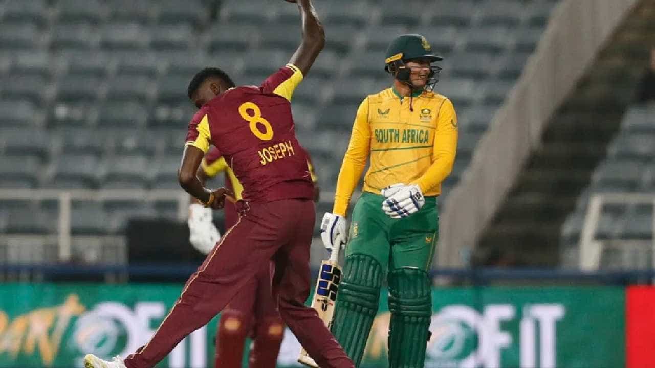 टी 20 सीरीजचा पहिला सामना वेस्ट इंडिजने तीन विकेटने जिंकला. दुसऱ्या सामन्यात दक्षिण आफ्रिकेने पुनरागमन केलं. 258 धावांच लक्ष्य 7 चेंडू बाकी असताना गाठलं. तिसऱ्या सामन्यात वेस्ट इंडिजने पुन्हा एकदा स्फोटक बॅटिंग केली. त्यांनी 220 धावा फटकावल्या. यजमान दक्षिण आफ्रिकेची टीम अल्जारी जोसेफसमोर टिकू शकली नाही.