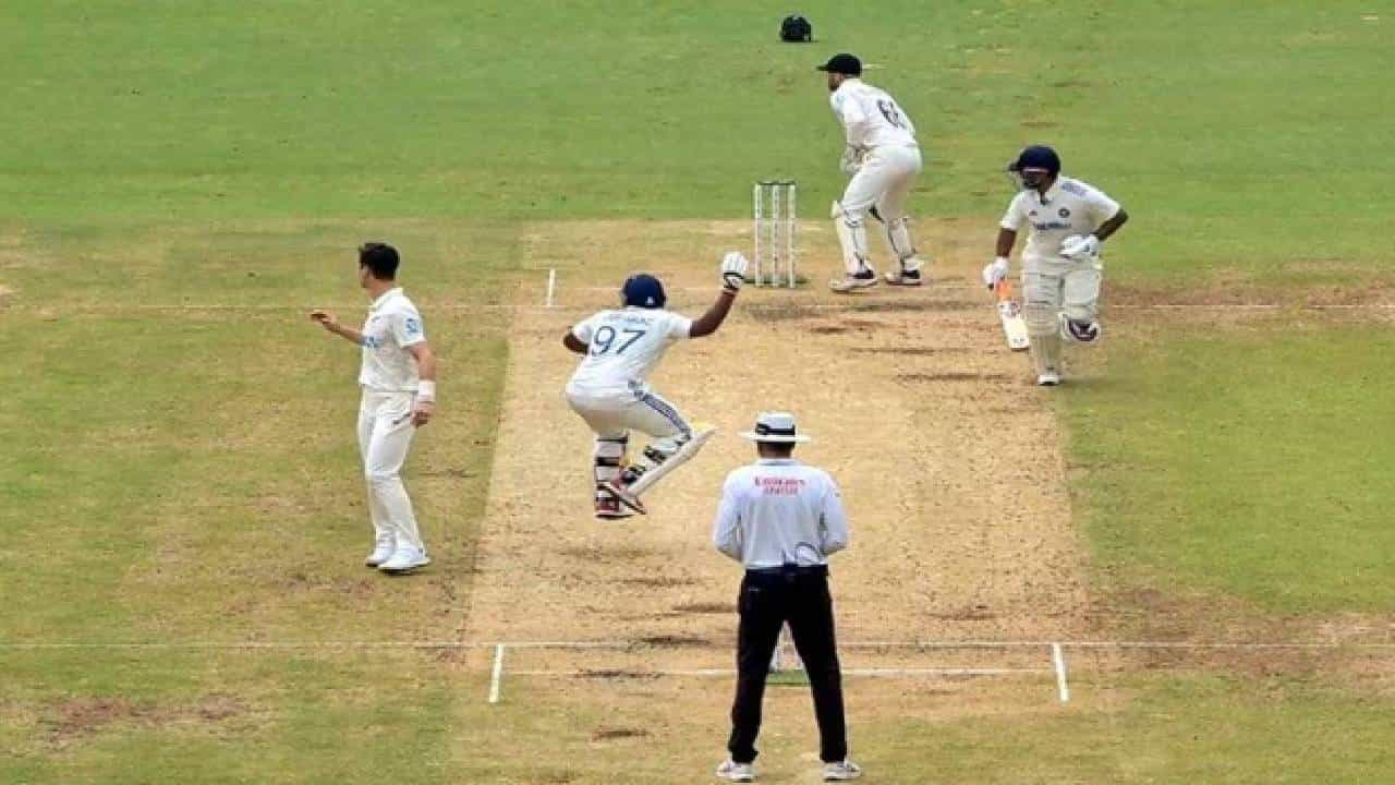 बंगळुरू कसोटीत भारताच्या डावाचं 65 षटक सुरु होतं. तेव्हा भारताची धावसंख्या 3 बाद 270 इतकी होती. न्यूझीलंडची आघाडी मोडण्यासाठी 86 धावांची आवश्यकता होता. ही आघाडी मोडून काढण्यासाठी सरफराज खानने आक्रमक खेळी केली. त्याने मॅट हेनरीच्या गोलंदाजीवर डीप बॅकवर्ड पॉइंटला कट केला आणि एक धाव घेतली. पण पंतने दुसऱ्या धावेसाठी पिक घेतला पण रनआऊट होण्याची शक्यता सरफराज खानला होती. सरफराज खानने यावेळी खेळपट्टीवर उड्या मारून बॅटचे हातवारे करून पंतला थांबवण्याचा प्रयन्त केला. त्यात त्याला यश आलं खरं पण विकेट नशिबाने वाचली.