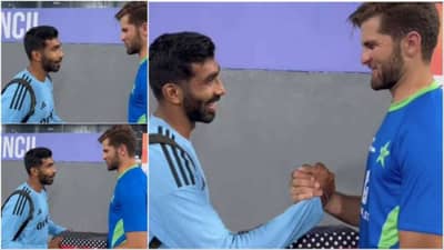 मुंबई : भारत विरुद्ध पाकिस्तान यांच्यातील सुपर 4 फेरीतील सामना पावसामुळे रद्द करण्यात आला आहे. आता हा सामना राखीव दिवशी खेळवला जाणार आहे. सामना रद्द झाल्यानंतर मैदानात जसप्रीत बुमराह आणि शाहिन शाह आफ्रिदी यांची भेट झाली. जसप्रीत बुमराह वडील झाल्याने त्याला शुभेच्छा देण्यासाठी शाहिन शाह आफ्रिदी आला होता. इतकंच काय तर यावेळी त्याने जसप्रीत बुमराह याला भेटवस्तू दिली. यावेळी शाहीनने त्याला अनोख्या शुभेच्छा दिल्या. जसप्रीत बुमराह आणि पत्नी संजना गणेशन यांना 4 सप्टेंबर रोजी पुत्ररत्न प्राप्त झालं आहे. तसेच मुलाचं नाव अंगद असं ठेवलं आहे.
