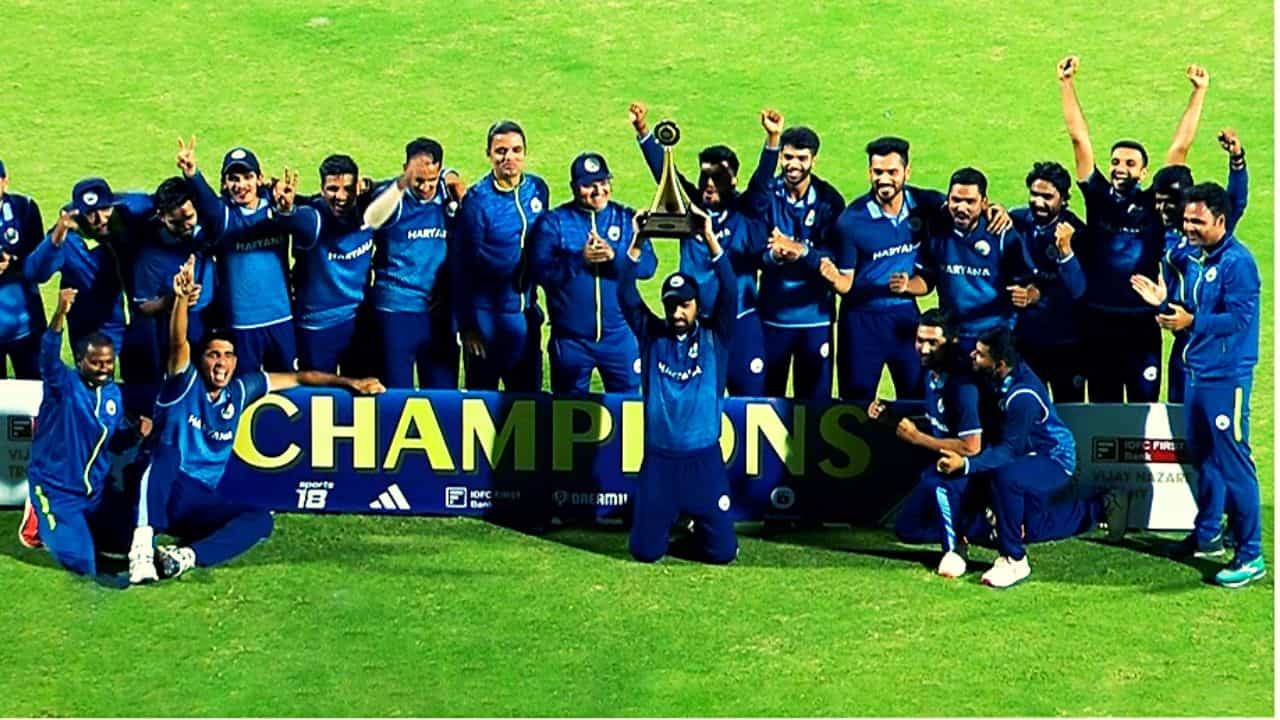 Vijay Hazare Trophy Final man of the Match : यंदा विजय हजारे ट्रॉफीवर हरियाणा संघाने पहिल्यांदा नाव कोरत इतिहास रचला. संपूर्ण ट्रॉफीमधील सामन्यांमध्ये आणि फायनल सामन्यात एका खेळाडूच्या बेस्ट प्रदर्शनामुळे त्यांना हे यश गाठता आलं असं म्हटलं तर वावगं ठरणार नाही. कोण आहे जाणून घ्या.