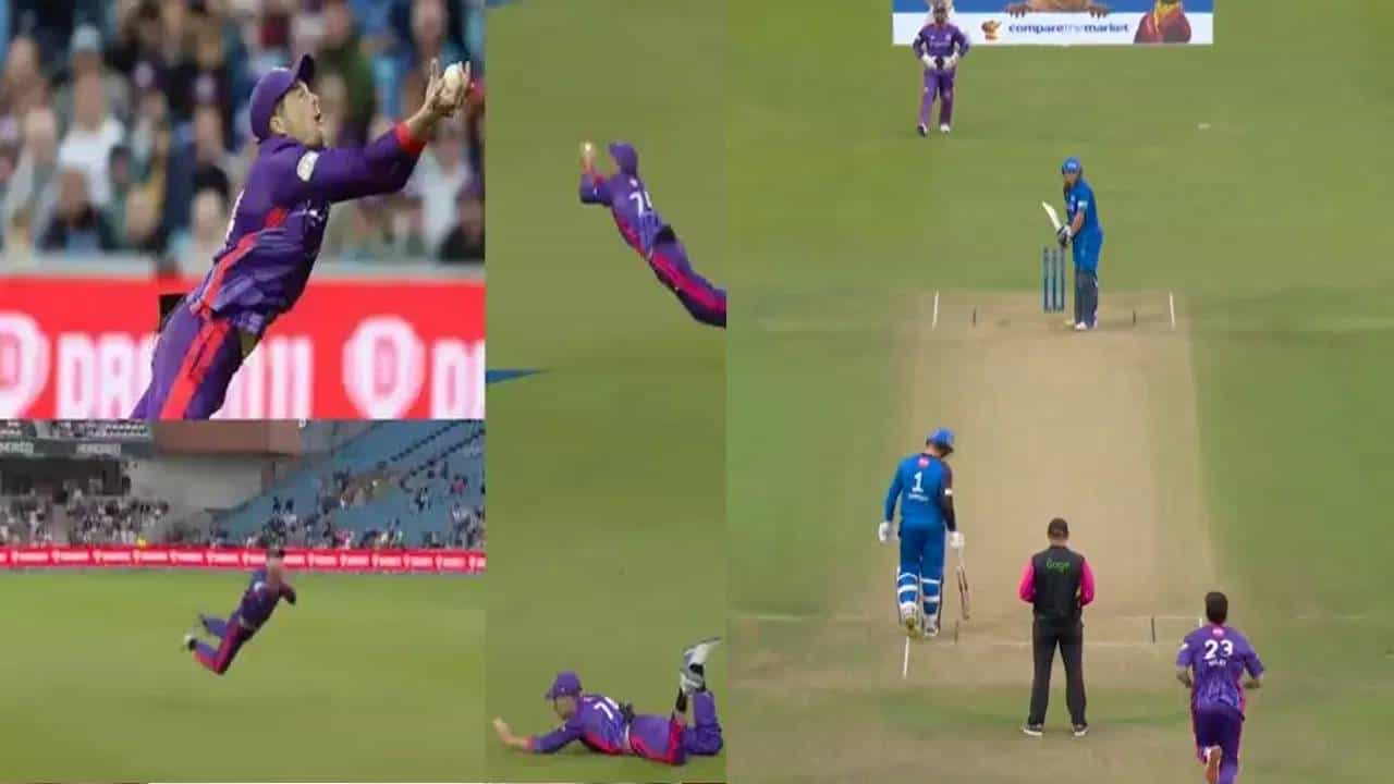 द हंड्रेड स्पर्धेत एका अप्रतिम झेलचं दर्शन घडलं. न्यूझीलंडचा स्टार क्रिकेटपटू मिचेल सँटनरने एक अप्रतिम झेल घेत प्रेक्षकांना आश्चर्याचा धक्का दिला. त्याचा हा झेल पाहिल्यानंतर तुम्हीही आवाक् होऊन जाल, यात शंका नाही. लंडन स्पिरिट आणि नॉर्थन सुपरचार्जर्स यांच्यात द हंड्रेड स्पर्धेत 29वा सामना खेळला गेला. या सामन्यात नॉर्थन सुपरचार्जर्सने नाणेफेक जिंकून प्रथम गोलंदाजी करण्याचा निर्णय घेतला. लंडन स्पिरीटने प्रथम फलंदाजी करताना 100 चेंडूत 8 विकेट गमवून 111 धावा केल्या. दरम्यान या सामन्यात नॉर्थन सुपरचार्जर्सने 44 चेंडूत 1 गडी गमवून 64 धावा केल्या. मात्र पावसाने हजेरी लावली आणि डकवर्थ लुईस नियमानुसार नॉर्थन सुपरचार्जर्सला विजयी घोषित केलं गेलं. 21 धावांनी नॉर्थन सुपरचार्जर्सचा विजय झाला. नॉर्थन सुपरचार्जर्सला या विजयामुळे फायदा झाला असून स्पर्धेतील आव्हान कायम आहे. 11 गुणांसह नॉर्थन सुपरचार्जर्स दुसऱ्या स्थानावर आहे. बाद फेरीत स्थान पक्कं करण्यासाठी वेल्श फायर आणि मॅन्चेस्टर ओरिजनल्स यांच्या सामन्यावर अवलंबून राहावं लागेल. असं सर्व गणित असताना या सामन्यात चर्चा रंगली ती मिचेल सँटनरच्या झेलची.
