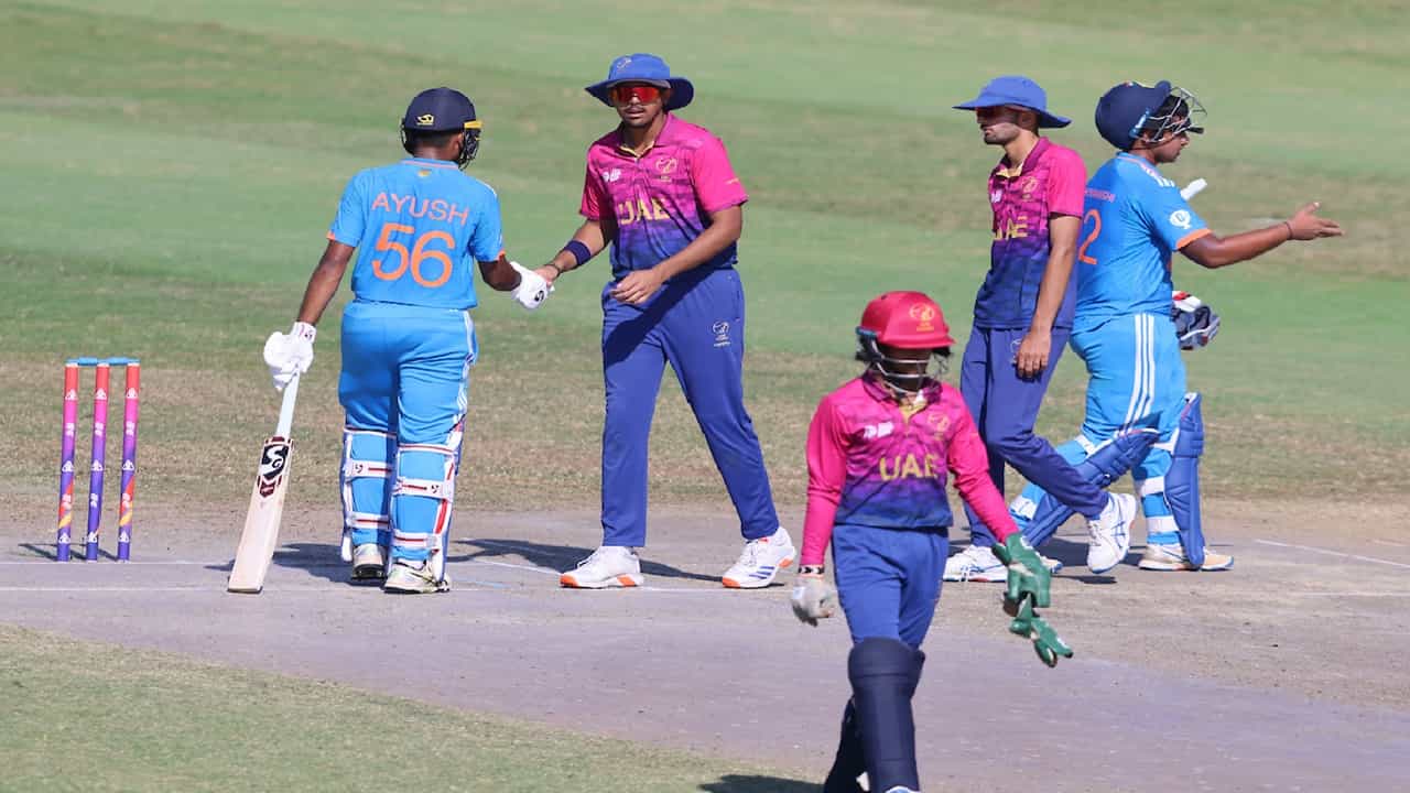 India U19 vs United Arab Emirates : टीम इंडियाने अंडर 19 आशिया कप 2024 स्पर्धेत यूएईवर 10 विकेट्सने जबरदस्त विजय मिळवला आहे. भारताने या विजयासह उपांत्य फेरीत प्रवेश मिळवला आहे.
