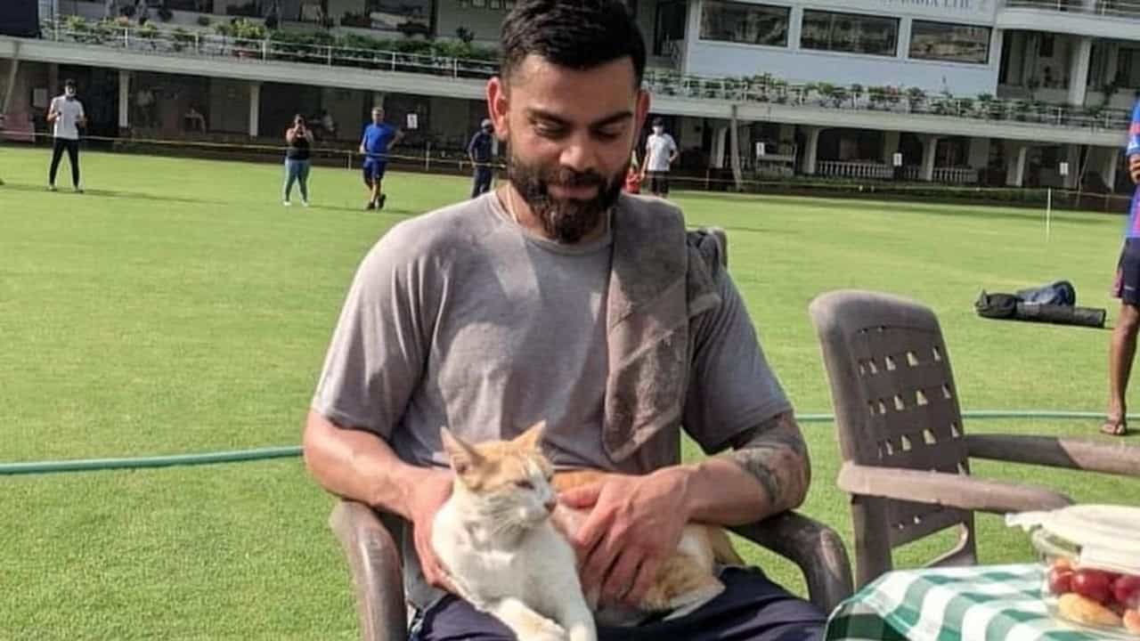 पत्नी अनुष्कासोबत (Anushka Sharma) मुंबईत राहणारा विराट सध्या वानखेडे मैदानावर सरावासाठी जात असून नुकताच त्याने सोशल मीडियावर एक फोटो शेअर केला. ज्यात तो मैदानात अचानक आलेल्या एकामांजरीला मांडीवर घेऊन बसलेला दिसत आहे.