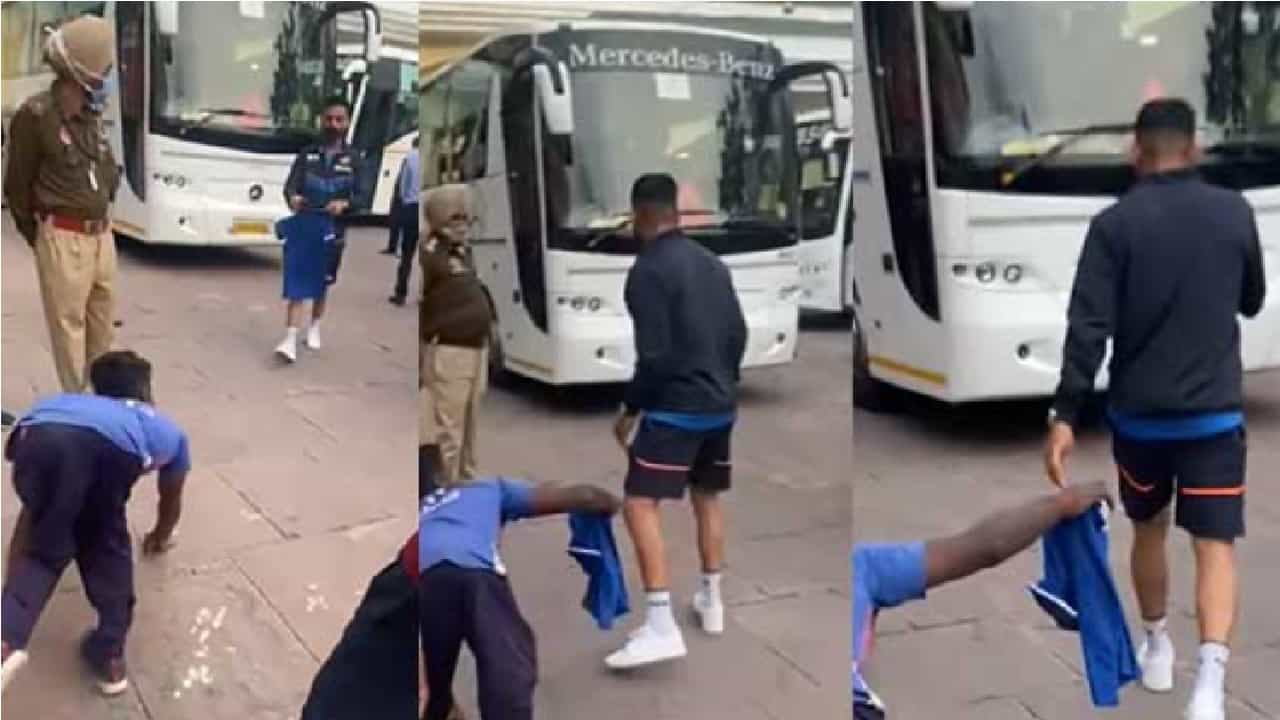 रविवारी श्रीलंकेवर 222 धावांनी विजय मिळवल्यानंतर टीम इंडिया स्टेडिममधून निघत होती. त्यावेळी बसच्या दिशेने जात असताना विरटाने धर्मवीरला पाहिलं. त्यावेळी विराटने स्वत:ची टीम इंडियाची जर्सी धर्मवीरला भेट म्हणून दिली. विराटने आपल्या या कृतीने सर्वांचच मन जिंकून घेतलं.