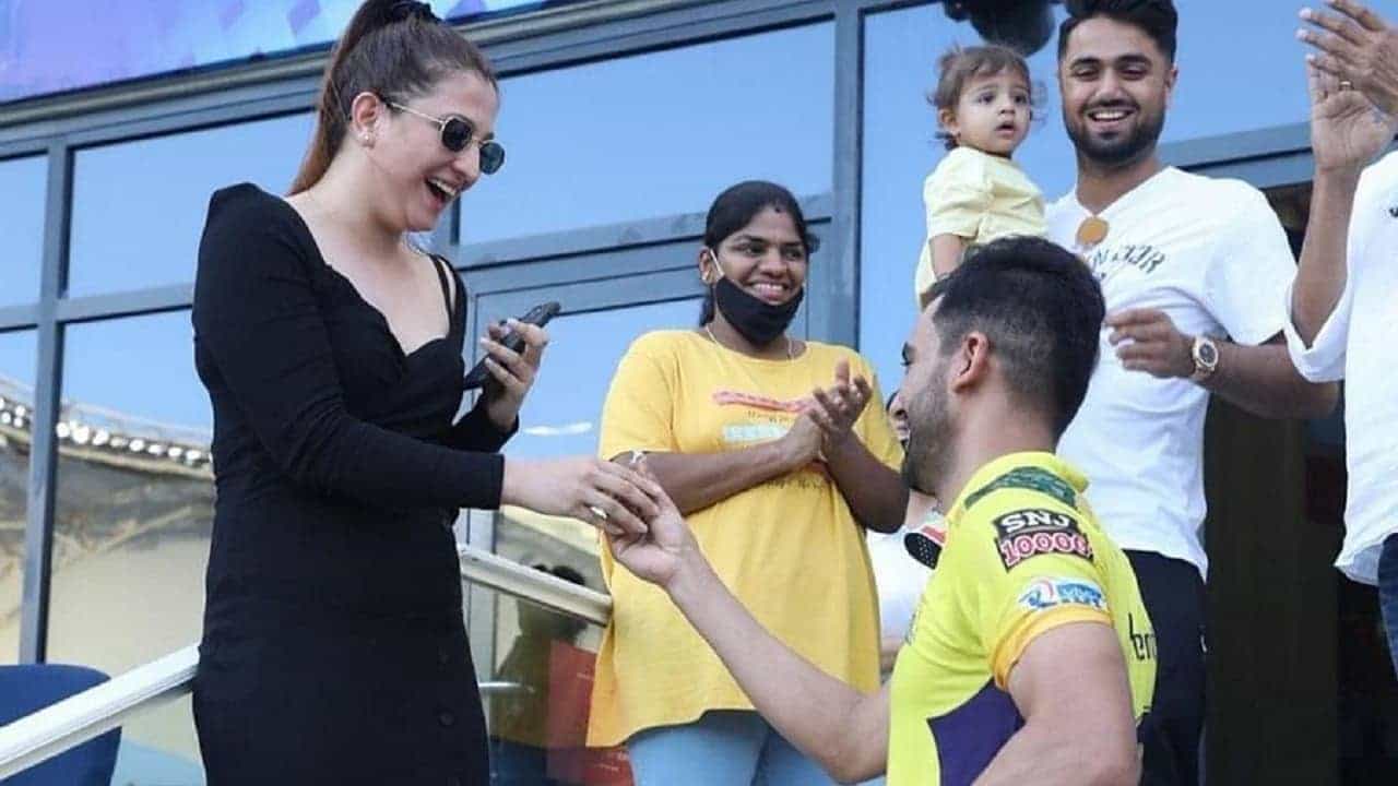 आयपीएलच्या चेन्नई सुपर किंग्स (CSK) विरुद्ध पंजाब किंग्स या संघामधील सामन्यात चेन्नईला 6 विकेट्सने पराभव पत्करावा लागला. पण चेन्नईचा गोलंदाज दीपक चाहरने (Deepak Chahar) मात्र प्रेमाच्या मैदानात बाजी मारली. सामना होताच त्याने त्याच्या गर्लफ्रेंडला प्रपोज केलं. तिनेही त्याचं प्रपोज स्वीकारत त्याला मिठी मारली. दरम्यान यानंतर सर्वत्र सामन्यापेक्षा दीपकच्याच प्रपोजची चर्चा असून दीपकची गर्लफ्रेंड नेमकी आहे कोण? असा प्रश्न अनेकांना पडला आहे.