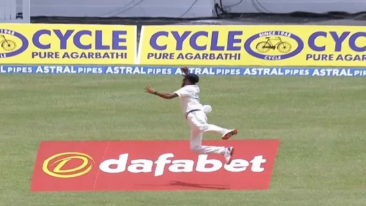 Mohammed Siraj Catch WI vs IND 1st Test | वेस्ट इंडिज विरुद्धच्या पहिल्या कसोटी सामन्यात टीम इंडियाच्या मोहम्मद सिराज याने एकाहाताने खतरनाक कॅच घेतलाय.
