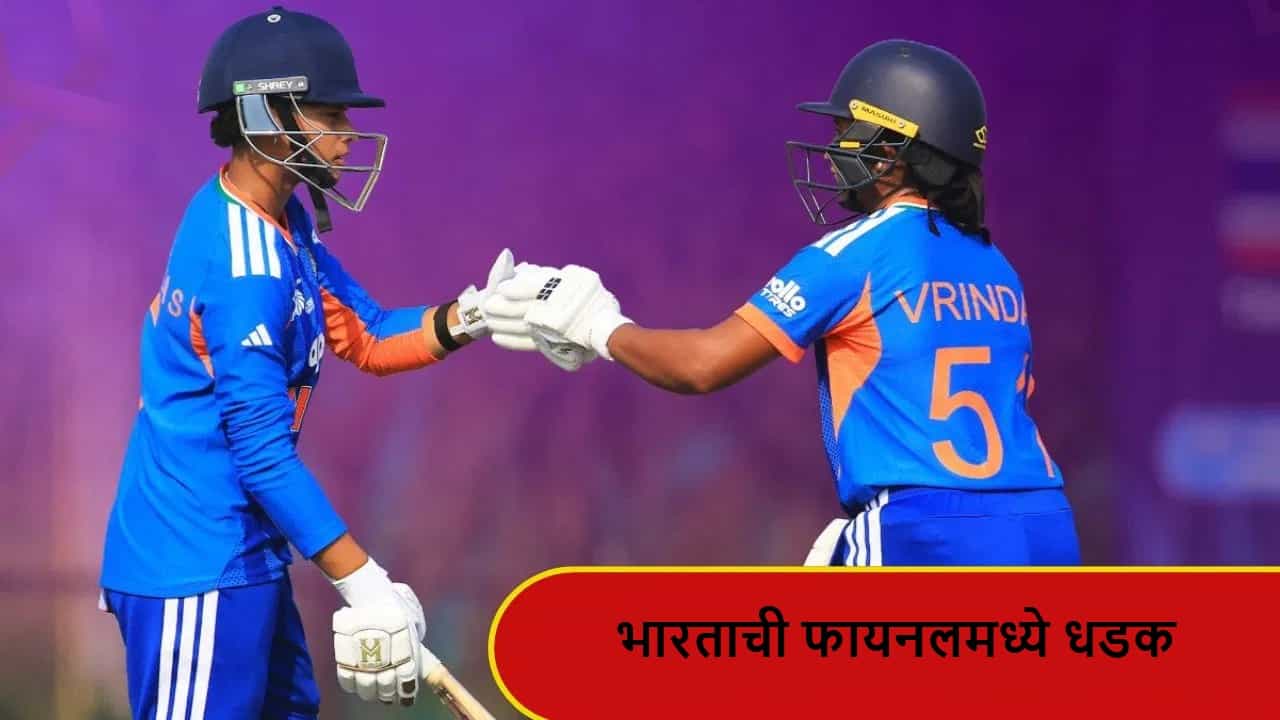 राधा यादव हीच्या नेतृत्वात इंडिया ए वूमन्स टीमने एमर्जिंग आशिया कप रायजिंग स्टार्स 2026 स्पर्धेच्या अंतिम फेरीत धडक दिली आहे. वूमन्स इंडिया टीमने बँकॉकमधील टेर्डथाई क्रिकेट ग्राउंडमध्ये आयोजित करण्यात आलेल्या उपांत्य फेरीतील या सामन्यात श्रीलंका ए वूमन्स टीमवर एकतर्फी विजय मिळवला. भारतीय गोलंदाजांनी श्रीलंकेला 19.4 ओव्हरमध्ये 118 धावांवर गुंडाळलं. त्यानंतर भारताने 119 धावांचं आव्हान 39 बॉलआधी पूर्ण केलं. भारताने 13.3 ओव्हरमध्ये 5 विकेट्सच्या मोबदल्यात विजयी आव्हान पूर्ण करत अंतिम फेरीत धडक दिली. इंडिया ए वूमन्स टीमची फायनलमध्ये पोहचण्याची ही सलग दुसरी वेळ ठरली. मुंबईकर कर्णधार राधा यादव भारताच्या विजयाची शिल्पकार ठरली. राधाने बॉलिंगसह बॅटिंगनेही या विजयात प्रमुख योगदान दिलं. राधाला या कामगिरीसाठी मॅन ऑफ द मॅच पुरस्काराने गौरवण्यात आलं.