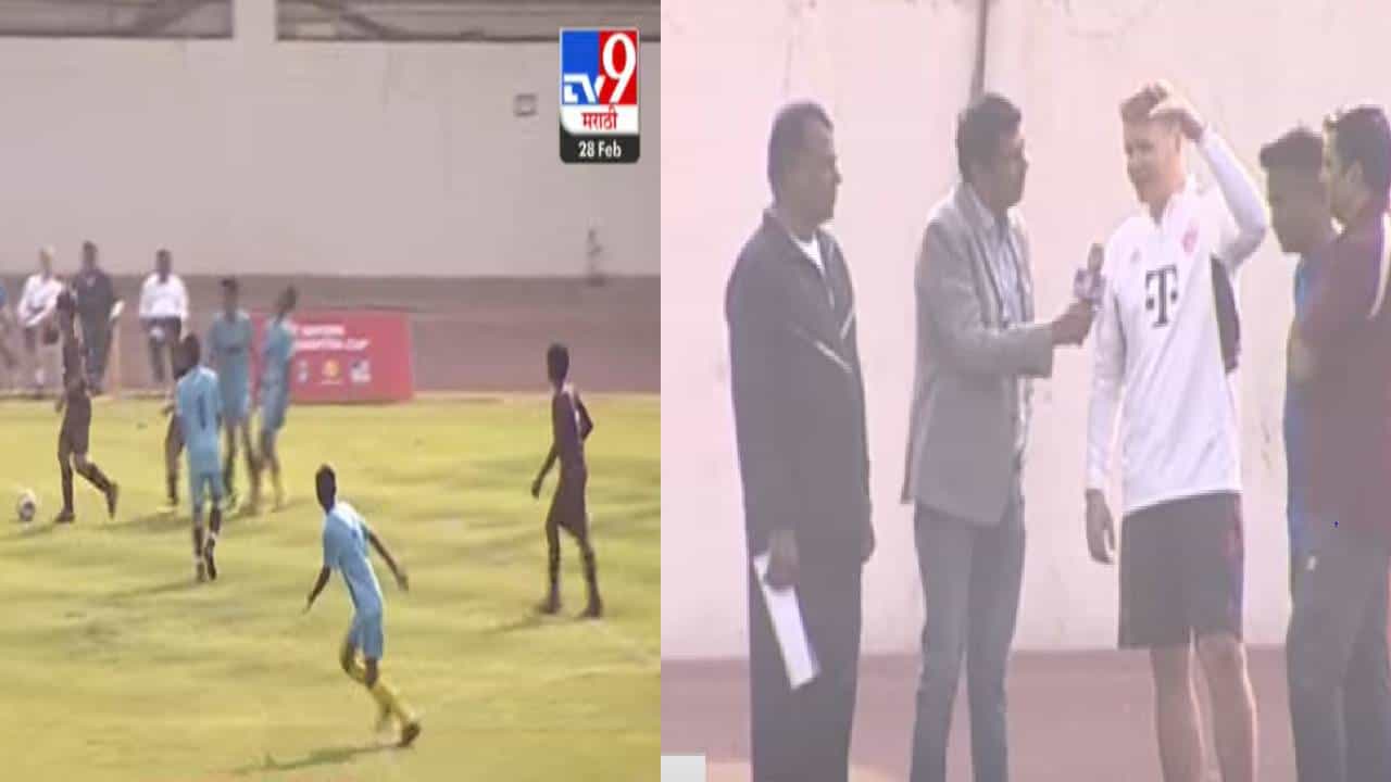 पुणे : बालेवाडी येथील फुटबॉल ग्राऊंडवर एफसी बायर्न महाराष्ट्र फुटबॉल कप स्पर्धा सुरु आहे. ही टुर्नामेंट आता अंतिम टप्प्यात आहे. आजपासून क्वार्टर फायनलचे सामने सुरु झाले आहेत. क्वार्टर फायनलची पहिली मॅच नागपूरची सेंट जॉन्स हायस्कूल आणि नाशिकच्या बार्नस स्कूल अँड ज्युनिअर कॉलेजमध्ये सुरु आहे. हा सामना मध्यांतराला थांबला होता. त्यावेळी आमचे प्रतिनिधी संजय दुधाणे यांनी जर्मनीहून आलेले निरीक्षक मॅथ्यूज यांच्याशी संवाद साधला. मॅथ्यूज यांनी, यावेळी जर्मनीतील फुटबॉलबद्दल महत्त्वपूर्ण माहिती दिली. ज्या 20 खेळाडूंना जर्मनीला पाठवण्यात येणार आहे, त्यांना काय फायदा होईल या बद्दल सांगितलं.