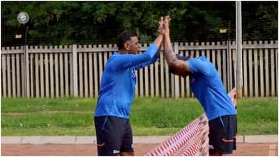 बीसीसीआयने शेअर केलेल्या व्हिडिओमध्ये खेळाडू एकत्र धावताना दिसत आहेत. हे दृश्य पाहून शाहरुख खानच्या चक दे इंडिया चित्रपटातील सीन आठवला. फुटवॉली खेळण्यात रमलेले खेळाडू हास्य-विनोद करताना परस्परांची फिरकी सुद्धा घेत होते. भारताचे मुख्य प्रशिक्षक राहुल द्रविड यांचा फिटनेस आणि उत्साह वाखाणण्याजोगा होता. सामना सुरु असताना द्रविड यांच्या कौशल्यपूर्ण खेळाचं विराटनेही कौतुक केलं.