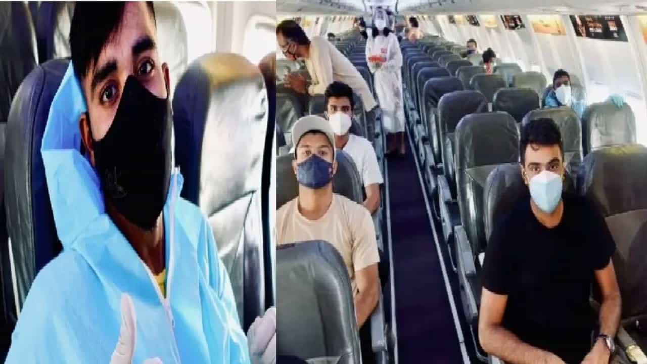 बीसीसीआयने टीम इंडियाच्या काही खेळाडूंचे विमानातले फोटो सोशल मीडियावर पोस्ट केले आहेत. या फोटोंमध्ये वॉशिंग्टन सुंदर, मयंक अग्रवाल, रविचंद्रन अश्विन, मिताली राज आणि मोहम्मद सिराज दिसत आहेत. फोटोत सिराजने पीपीई किट परिधान केलंय, ज्यामध्ये त्याला ओळखणे कठीण जात आहे.