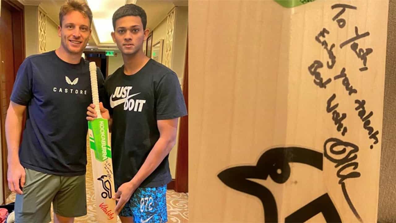 यंदाच्या आयपीएलमध्ये बटलरने हैदराबादविरुद्ध 64 बॉलमध्ये 124 रन्सची शानदार खेळी केली. ज्या बॅटने बटलरने आयपीएलमध्ये शतक ठोकलं तीच बॅट त्याने यशस्वीला भेट म्हणून दिली आहे.