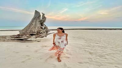 संजना गणेशन हिने 31 मे रोजी आपल्या इन्स्टाग्रामवर एक फोटो शेअर केलाय. हा थ्रो बॅक फोटो असल्याचं तिने सांगितलंय. या फोटोत ती निळ्या आकाशाखाली आणि निळ्याशार समुद्राच्या बीचवर असलेली पाहायला मिळतीय. कदाचित संजनाचा हा फोटो मालदीवमधला असावा.