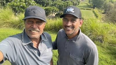 क्रिकेट खेळाडूंचे (Cricket Player) सोशल मीडियावर (Social Media) अधिक फॅन आहेत. त्यांच्या कामगिरीनुसार त्यांची चर्चा होते. काल अचानक कपिल देव (kapil Dev) आणि धोनी एकत्र दिसल्याने त्यांची सोशल मीडियावर चर्चा सुरु झाली आहे. ते दोघंही एका गोफ्टच्या मैदानात आहेत. त्याचबरोबर दोघांची कपडे सुद्धा एकसारखी असल्याने त्याचे फोटो व्हायरल झाले आहेत.
