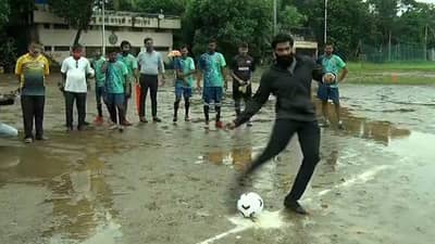 राजकारणी म्हटलं की कायम विचाराधीन, पांढरे शुभ्र कपडे आणि कामांमध्ये व्यस्त असचं व्यक्तीमत्त्व समोर येतं. पण या सर्वाला छेद देत महाराष्ट्रातील एक तरुण नेतृत्त्व असणारे राज ठाकरे यांचे सुपुत्र अमित ठाकरे यांनी थेट फुटबॉलच्या मैदानात उतरत फुटबॉल खेळण्याचा आनंद लुटला.