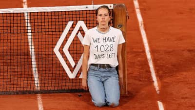 नवी दिल्ली : पर्यावरणवादी कार्यकर्ती ग्रेटा थनबर्गनं (Greta Thunberg) काही काळापूर्वी अवघ्या जगाचं लक्ष वेधलं होतं. हवामानबदलाविषयी तीनं लक्ष्य वेधळं होतं. आता दुसरीकडे आम्ही तुम्हाला पर्यावरणवादी कार्यकर्तीचीच बातमी सांगणार आहोत. फ्रेंच ओपनच्या (French open 2022) दुसऱ्या सेमीफायनलदरम्यान (semifinals) एका पर्यावरणवादी कार्यकर्तीनं असंच एक आंदोलन करण्याचा प्रयत्न केला. मात्र, ते तीनं पूर्णपणे चुकीच्या पद्धीतीनं केलं. तीनं असं काही केलं की त्यामुळे सगळेच आश्चर्यचकित झाले. एक मुलगी बळजबरीनं कोर्टात घुसली आणि तिनं गळ्यात घातलेली साखळी जाळीला बांधली आणि जमिनीवर पडली. हे पाहून खेळाडूंनी कोर्टातून पळ काढला आणि खेळ थांबवावा लागला. यावेळी एकच गोंधळ उडाला होता. हा धक्कादायक प्रकार अचानक गडल्याने खेळाडू देखील घाबरले.