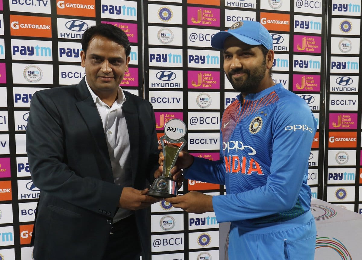 रोहित शर्माला या सामन्यातील खेळीबद्दल सामनावीराचा मान देण्यात आला. रोहितच्या नेतृत्त्वातील या मालिकेत भारतीय संघ 2-0 ने आघाडीवर आहे.