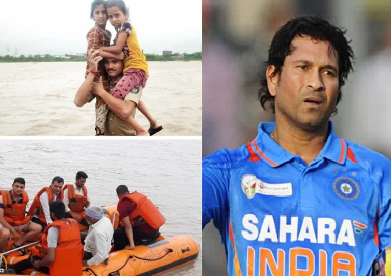 एनडीआरएफच्या जवानांपासून सर्वसामान्यांपर्यंत अनेक जण पूरग्रस्तांना मदत करत असल्याचे फोटो सचिनने ट्विटरवर शेअर केले आहेत.