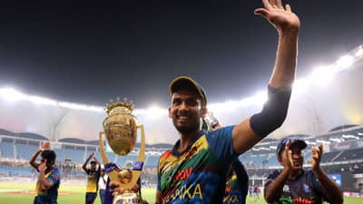 श्रीलंकेचा कर्णधार दासुन शनाका आशिया चषकाची ट्रॉफी घेतल्यानंतर...