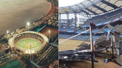 वानखेडे स्टेडियममध्ये चक्रीवादळ केलेल्या कहराने झालेल्या नुकसानीचे फोटो सोशल मीडियावर जोरदार व्हायरल होत आहेत. असाच एक फोटो ट्विटरवर मोठ्या प्रमाणावर व्हायरल होतोय. या फोटोतील वानखेडे स्टेडियमची अवस्था पाहून क्रिकेट फॅन्स नाराज झाले आहेत. आपल्या कमेंटमधून ते त्यांचं दु:ख व्यक्त करतायत.