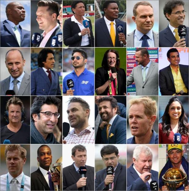 आयसीसीच्या कॉमेंटेटरच्या यादीत ऑस्ट्रेलियाचा माजी कर्णधार मायकल क्लार्क, मार्क निकोलस, इंग्लंडचा नासिर हुसैन, इयान बिशप, मेलेनी जोन्स, कुमार संगकारा, मायकल एथर्टन, एलिसन मिशेल, ब्रेंडन मॅक्युलम, ग्रॅमी स्मिथ, वासिम आक्रम अशी दिग्गजांची नावं आहेत.