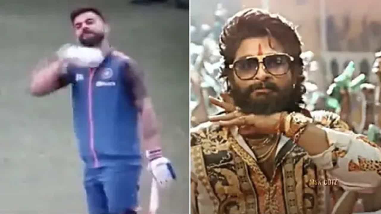 मेलबर्न : ज्यावेळी पुष्पा (Pushpa) नावाचा सिनेमा आला होता, त्यावेळी त्या सिनेमाची (Film) गाणी आणि डायलॉग चाहत्यांच्या अधिक पसंतीला पडली होती. पुष्पा सिनेमातील काही डायलॉगचे अनेकांनी व्हिडीओ (Video) तयार केले होते. आजही ती स्टाईल अनेकजण करताना दिसतात. विराट कोहलीने (Virat Kohli) सुद्धा सरावादरम्यान ती स्टाईल केल्याचा व्हिडीओ व्हायरल झाला आहे.