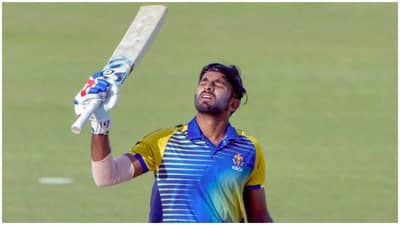 दिल्ली : देशांतर्गत सुरु असलेलेल्या विजय हजारे स्पर्धेत (Vijay Hazare Trophy 2021) अनेक युवा खेळाडू आपली छाप सोडत आहेत. यंदाच्या स्पर्धेत फलंदाजांनी आतापर्यंत शानदार कामगिरी केली आहे. फलंदाज आपल्या कामगिरीने दिग्गजांच लक्ष वेधून घेत आहेत. आज (8 March) केरळ विरुद्ध झालेल्या सामन्यात कर्नाटकचा कर्णधार रवीकुमार समर्थने (Ravikumar samrath) वादळी खेळी केली. रवीकुमारचे वडील एसबीआय (SBI) बँकेत क्लर्क म्हणून काम करतात. केरळ विरुद्ध कर्नाटक यांच्यातील (Karnataka vs Kerala Quarter Final 2) क्वार्टर फायनल 2 मधील सामन्यात रवी कुमारने 25 चेंडूत 106 धावा चोपल्या. (vijay hazare trophy 2021 Karnataka Ravikumar Samarth score 192 runs against kerala)