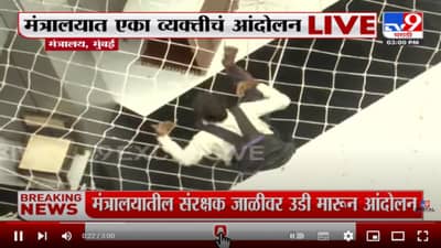 मुंबई : मंत्रालयात (Mantralay) एका आंदोलन कार्यकर्त्यांने संरक्षण जाळीवर उडी घेतल्यामुळे सुरक्षा रक्षकांचा चांगलाचं गोंधळ उडाला आहे. विशेष म्हणजे संरक्षण जाळीवर उडी घेतल्यानंतर सुद्धा तो कार्यकर्ता घोषणा देत असल्याचं व्हिडीओ (Video) स्पष्ट दिसत आहेत. मंत्रालयात विविध कामानिमित्त आलेले नागरिक सुद्धा कार्यकर्त्याचं आंदोलन पाहत असल्याचं दिसतंय. दुपारच्या सुमारास उडी घेतल्यामुळे आंदोलन कर्त्याच्या डोक्याला दुखापत झाल्याची माहिती मिळाली आहे. आंदोलनकर्ता (Agitator) तरुण असून त्याच्या पाठीवर एक बॅग आहे.