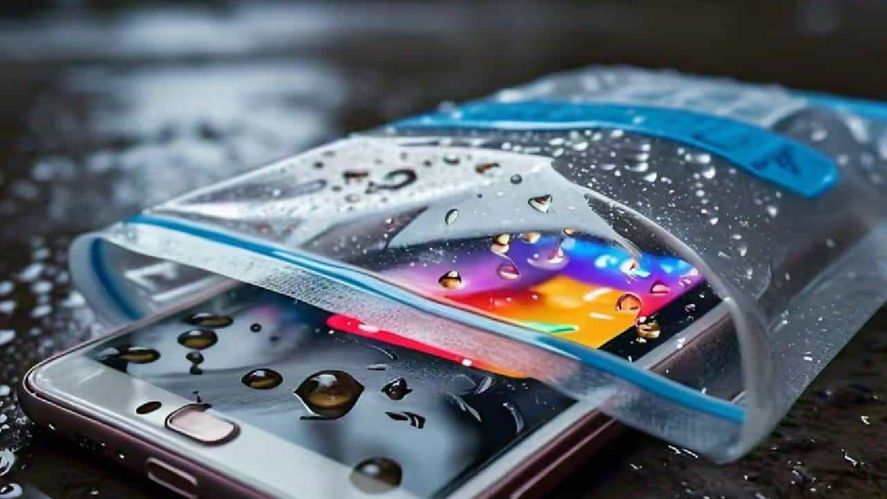 - वॉटरप्रूफ केस वापरणं शक्य नसेल, तर फोन सीलबंद वॉटरप्रूफ पाऊचमध्ये ठेवा. पाऊच पूर्णपणे बंद होतेय आणि पाणी आत जाणार नाही, याची खात्री करा. पाऊचमध्ये सिलिका जेलचं छोटं पॅकेट ठेवा. हे ओलावा शोषून घेईल. पाऊच स्वस्त आणि प्रभावी पर्याय आहे.