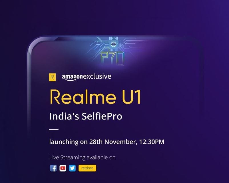 Be prepared for the world’s first #MediaTekHelioP70 smartphone and an unmatchable selfie experience! Welcome #IndiasSelfiePro #RealmU1. Launch event live starts from 12:30 PM, Nov 28. Tag that person who’s crazy about selfie. ? pic.twitter.com/VnD8nWnzcC
