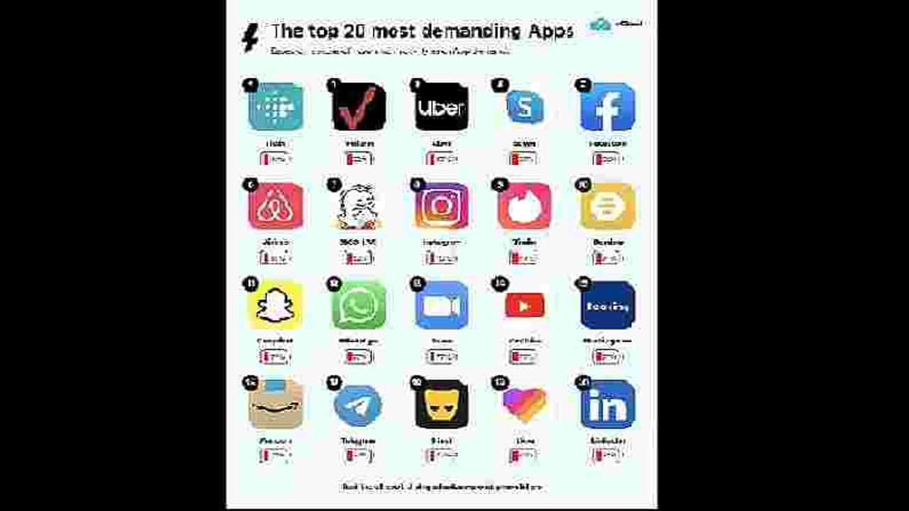 हे आहेत 20 सर्वाधिक बॅटरी ड्रेन करणारे अॅप्स यामध्ये Fitbit, Verizon, Uber, Skype, Facebook, Airbnb, BIGO LIVE, Instagram, Tinder, Bumble, Snapchat, WhatsApp, Zoom, YouTube, Booking.com, Amazon, Telegram, Grindr, Likee आणि LinkedIn अॅप समाविष्ट आहे.