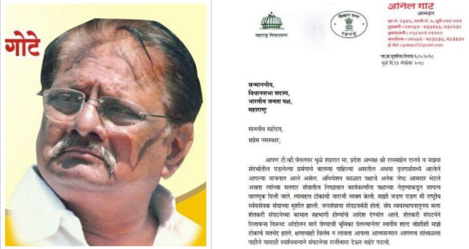 इतकंच नाही तर आपण 19 नोव्हेंबरला विधीमंडळाच्या पहिल्या दिवशी आमदारकीचा राजीनामा देणार असल्याचं गोटे यांनी पत्रात नमूद केलं आहे.