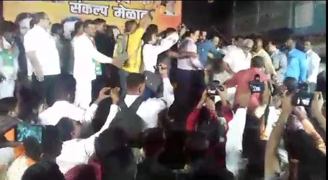स्टेजवरुन शिवराळ भाषा वापरणारे हिरामण गवळी यांना गोटे यांनी स्टेजवर चढून लोकांसमोर थोबाडीत मारल्याचं सांगण्यात येत आहे.