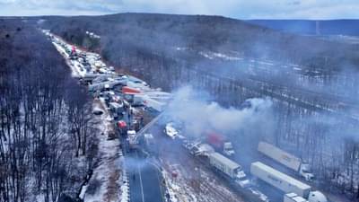 वॉशिंग्टन : सोमवारी अमेरिकेच्या पेनसिल्व्हेनिया महामार्गावर (Pennsylvania Highway) बर्फाचे वादळ (Snow Squall) आले. या वादळामुळे महामार्गावर एकामागून एक 50 ते 60 वाहने आदळल्याची घटना घडली आहे. या भीषण अपघातात आत्तापर्यंत 3 जणांचा मृत्यू झाला आहे, तर अनेक जण गंभीर जखमी (Injured) झाले आहेत. त्यांच्यावर रुग्णालयात उपचार सुरू आहेत. हा अपघात पेनसिल्व्हेनियाच्या शुयलकिल काउंटीमध्ये घडला. अपघातानंतर परिसरात गोंधळाचे वातावरण निर्माण झाले होते. या भीषण अपघाताचा एक व्हिडिओ यूट्यूबवर शेअर करण्यात आला असून त्यात एकामागून एक वाहने आदळताना दिसत आहेत. बर्फवृष्टीमुळे वाहनचालकांचे नियंत्रण कसे सुटत आहे, हे व्हिडिओमध्ये दिसत आहे. कारची धडक बसल्यानंतर लोक गाड्यांमधून बाहेर पडत आहेत. वाहतुकीचा प्रचंड खोळंबा झालेला पाहायला मिळत आहे. बर्फवृष्टीमुळे दिसतही नव्हते.