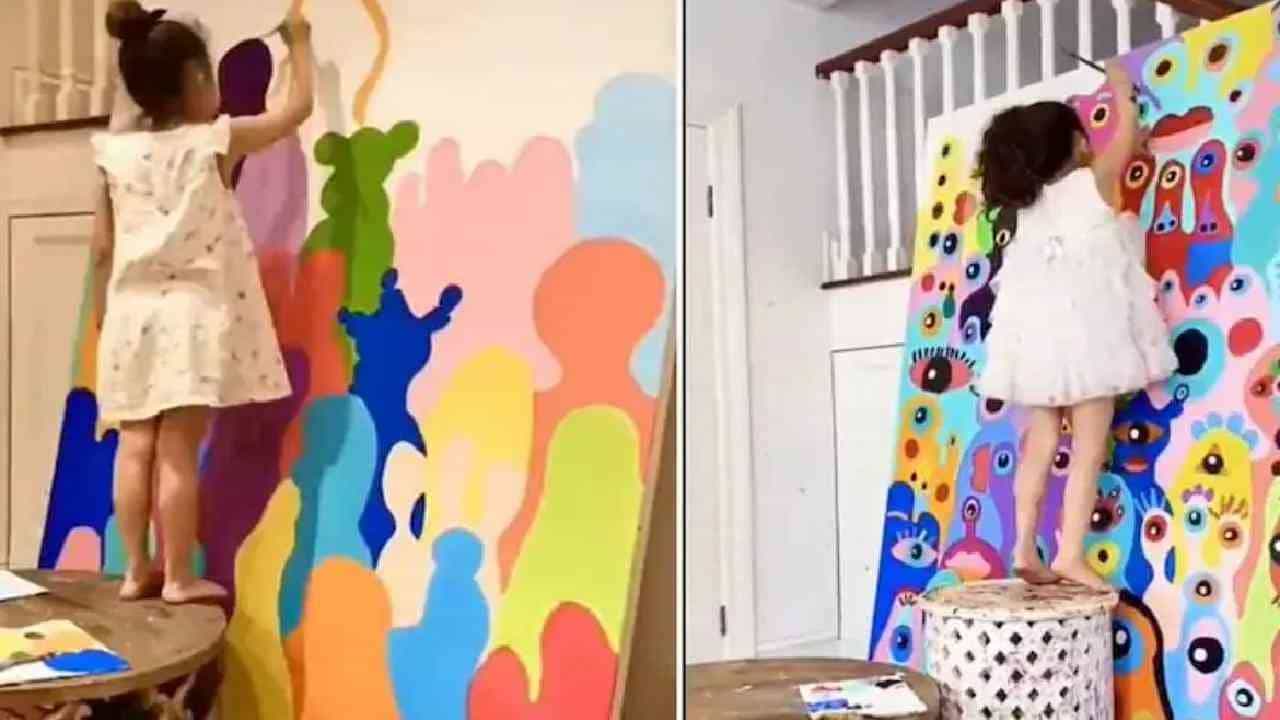 हे सुंदर पेंटिंग एका 5 वर्षाच्या मुलीने बनवलं आहे. म्हणूनच या मुलीच्या चित्रकलेची सोशल मीडियावर जोरदार चर्चा होत आहे. सोशल मीडियावर चर्चेत असलेल्या व्हिडिओमध्ये एक मुलगी तिच्या उंचीपेक्षा मोठ्या कॅनव्हासवर पेंटिंग बनवताना दिसत आहे.