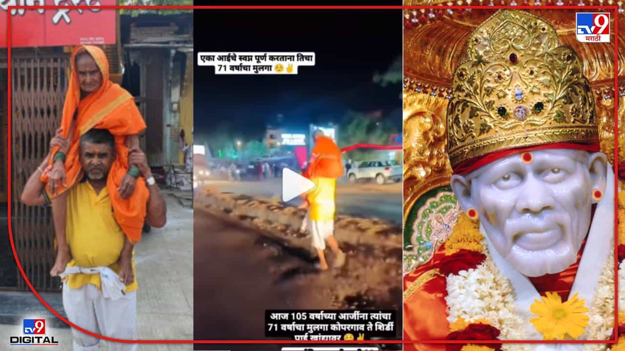 Video : वय वर्ष 71 असलेल्या ‘श्रावणबाळा’चा 105 वर्षांच्या आईला खांद्यावर घेत शिर्डी पायी प्रवास
