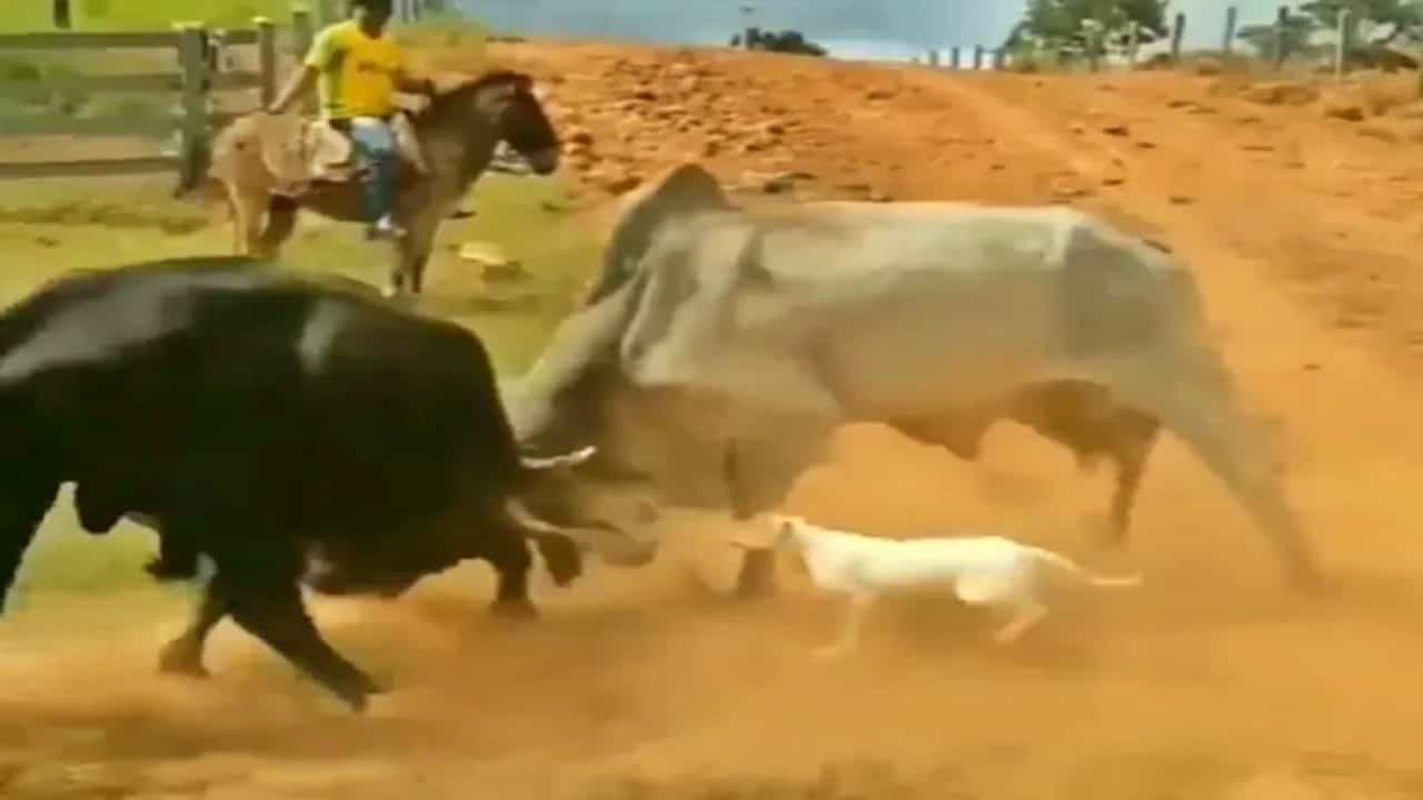 व्हायरल व्हिडिओमध्ये तुम्ही पाहू शकता, की एका कच्च्या रस्त्याच्या कडेला अचानक दोन बैल एकमेकांना भिडतात आणि जोरदार एकमेकांना टक्कर मारतात. यादरम्यान घोड्यावर बसलेली एक व्यक्ती ही लढाई पाहत आहे. व्हिडिओमध्ये दिसत आहे, की बैल एकमेकांवर कसे तुटून पडत आहेत, पण अचानक एक कुत्रा भांडणात सामील होतो. एक बैल अतिशय चिडून जातो आणि तो कुत्र्याचा कान तोंडाने पकडून त्याला मारतो. दरम्यान, दुसऱ्या बैलाला संधी मिळून तो पांढऱ्या बैलाला शिंगाने मारतो. अशी मजेशीर झुंज तुम्ही क्वचितच पाहिली असेल, ज्यात बैलांमध्ये कुत्रा लढायला आला असेल.