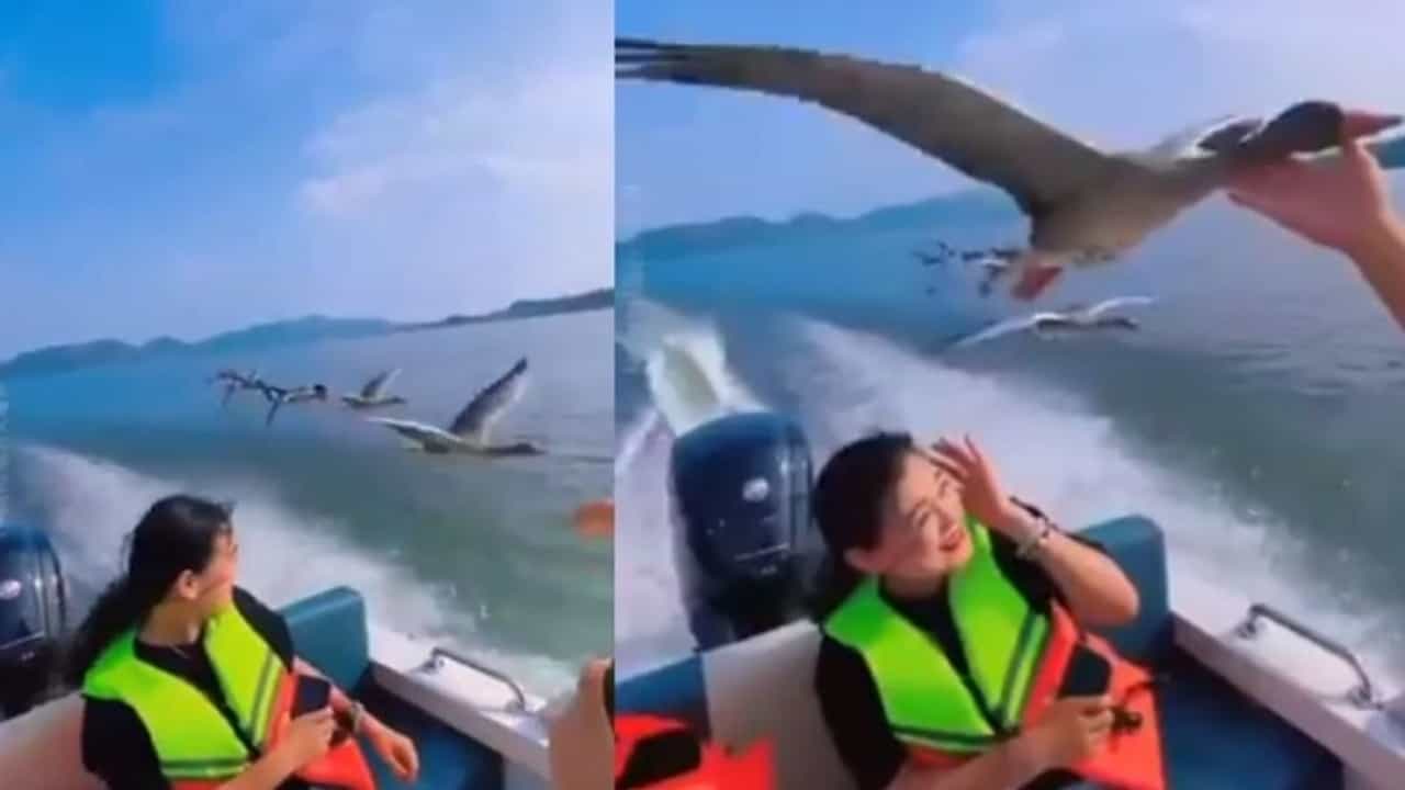 Video: मधोमध स्पीडबोट, दोन्ही बाजूला पक्ष्यांचा थवा, नजरा पाहून नेटकरी म्हणाले, ‘दिवस कारणी लागला!’