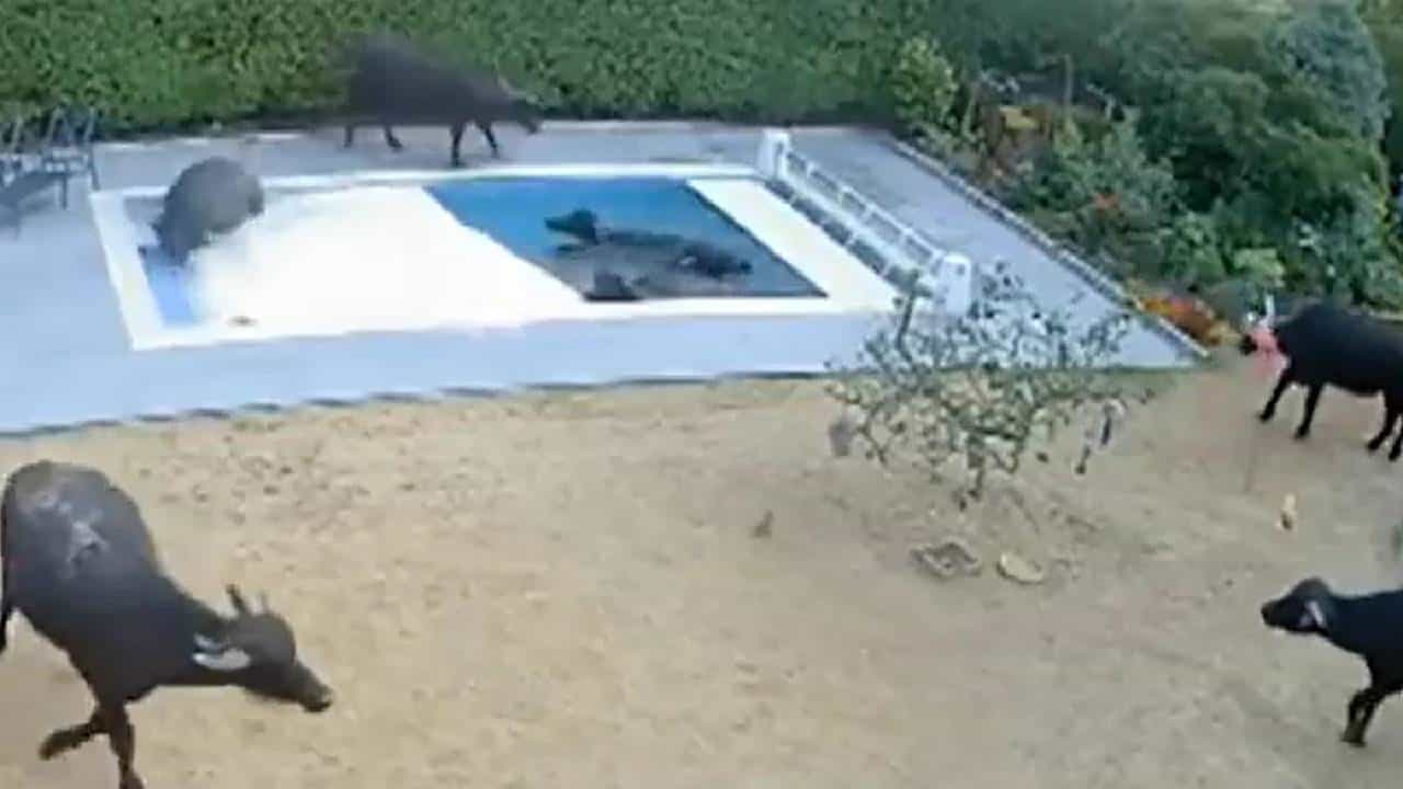 VIDEO | म्हशींचा कळप पोहला स्विमिंग पूलमध्ये, लाखो रुपयांचं नुकसान पाहून मालकाने डोक्याला हात लावला